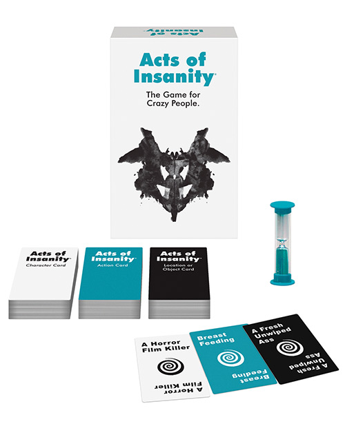 The crazy party game for crazy people! The raunchy party game where you act out adult scenarios for your team to guess. The opposing team reviews 5 of each game card type and assigns you a Character Card, Action Card, and Location or Object Card. You then have two minutes to act it out for your team. Game Includes: 108 Character Cards, 108 Action Cards, 108 Location or Object Cards, a 2-Minute Timer, and Game Instructions. For 4-12 players. From Kheper Games.