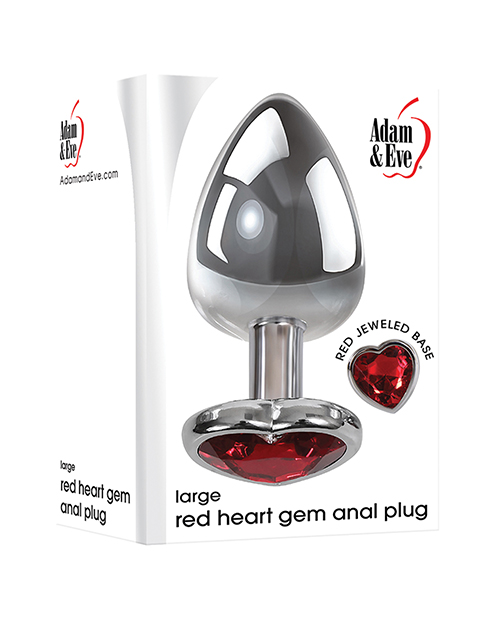 Adam & Eve Red Heart Gem Anal Plug - Large Red/Chrome