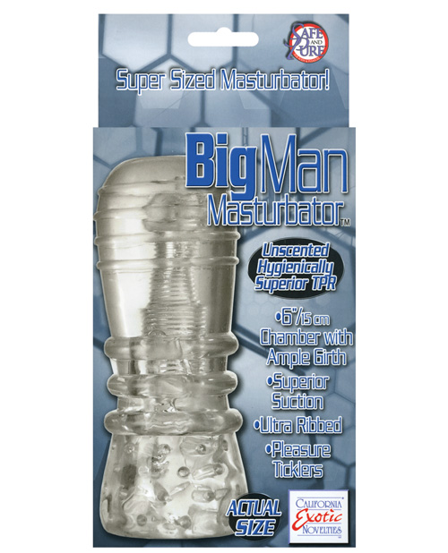 Get ready to explode, big man! The Big Man Masturbator offers superior suction, an ultra-ribbed tightly contoured tunnel, a closed bulbous head for extra suction, and extensive pleasure ticklers in the entrance. Get a grip on the Big Man Masturbator and get off.
