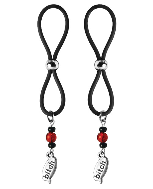 Bijoux de Nip Nipple Halos with Bitch Charm from PHS international. Color: Red/ Black