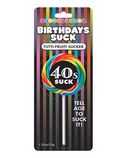They say 40 is the new 20 so tell the decade to Suck It! With a Birthdays Suck Tutti-Fruiti Sucker.