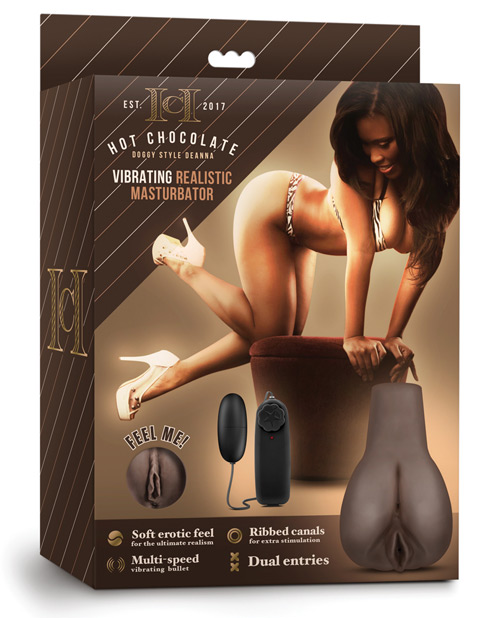 From Blush Novelties Doggy Style Deanna is a vibrating realistic masturbator. Featuring Multi-speed vibrations and dual entries. Ribbed canal for intense stimulation.Made from body safe materials and meets or exceeds international safety standards as set forth by CE and RoHS directives. Phthalate and latex free. Requires 2 AA batteries ( not included) Insertable Length: 6 inches.Circumference: Length: 7.5 inches .Width: 4.5 inches.Product Weight: 24.0 ounces