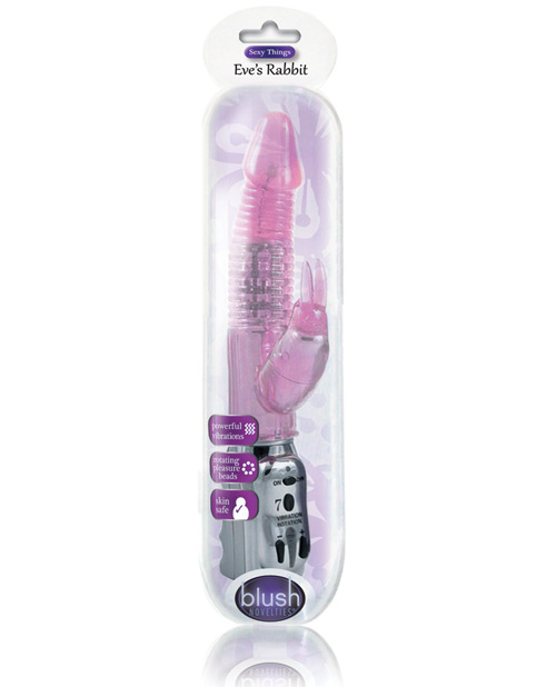 Eve’s Rabbit was selected by Cosmopolitan Magazine as an Intermediate XXX Shopper Top Pick! Check out the article “In Search of the Ultimate Orgasm” in their February 2014 issue. From Cosmo:”The iconic, addictive sex toy hops on… ‘At first glance, it looks intimidating… but once you get down to it, the shaft and the ears hit right where they need to for an ideal, double-the-fun orgasm,’ says Missy K., 28.” Eve’s Rabbit is a classic rabbit shape with tons of powerful functions to blow your mind! The rabbit clit stimulator contains a jumbo bullet which vibrates with 7 powerful functions. The 6-speed gyrating shaft contains 5 rows of pleasure beads to amaze you with a variety of sensations. The ribbed shaft, all the way down to the soft rabbit eats, are made of soft, body-safe, phthalate-free TPR. You will soon find out why it’s one of our top selling rabbits vibrators. Sturdy contruction and powerful motors, including non-jamming beads that will not stop when squeezed. Independent controls allow you to customize your perfect big O! Overall length: 10.25″; usable length: 5.5″. Requires 4 AA batteries.