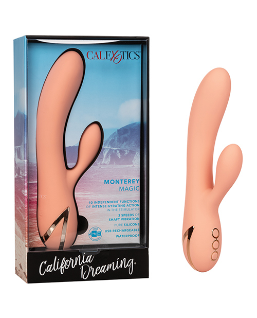 Powerful dual-action massager with intense gyrating teaser. 3 speeds of independent shaft vibration. 10 functions of intense gyrating action in the stimulator. Body-safe Silicone. State-of-the-art memory chip resumes on last function used. Easy push-button control with security travel lock feature. USB rechargeable – charging cord included. Complete charge in 2.5 hours. Runs for 40 minutes on high speed and 2.5 hours on low speed.
