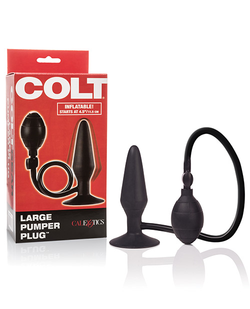 The COLT Large Pumper Plug from Cal Exotics. Pliable and durable Silicone inflatable plug with superior suction cup base. Easy squeeze bulb. Quick air release valve. Silicone (probe, hose, bulb) ABS (release valve). 4.5″ x 1.5″/11.5 cm x 3.75 cm (before inflating).