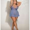 Embroidered Mesh Underwire Babydoll & G-String Blue 1X/2X