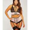 Estrella Lace & Stretch Sateen Bra & Garter Set Pink/Black 3X