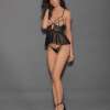 European Lace Teddy Babydoll. From Escante. Color: Black Material: Nylon and spandex Large. Size: 10-14. Cup: C/D. Bust: 36in.-38in. Waist: 28in.-32in. Hip: 38in.-40in. Weight: 140-160lbs.