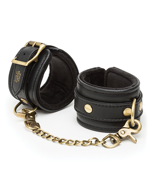 Lavishly combining style and function, these sumptuously padded wrist cuffs combine faux leather with antique gold finishing to bring style and luxury to your bondage adventures. Perfect for inspiring a little Ana-and-Christian-inspired exploration. Lined with soft, furry fabric, these exquisite wrist cuffs feel as gorgeous as they look. Strong antique gold buckles and durable faux leather ensure reliable restraint in a variety of positions, while the quick-release clips give you peace of mind. Pair your cuffs with other accessories from the Bound to You collection, for undeniably erotic adventures. Simply remove the chain and attach them to the Bound to You spreader bar or hogtie to discover new ways to tie and tease.