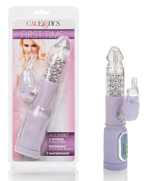 The Cal Exotic’s First Time Jack Rabbit is the perfect rabbit for your first time. It has 3 power packed functions. The rabbit features non-jamming rotating silver beads. The glow-in-the-dark buttons make it easy to use. May be used in or out of water. Make it a memorable experience with the First Time Collection.