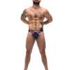 n the mood to flash a little cheek? This super soft french terry brief bares more than a little back plus some sexy side-action. Strappy cutouts under a stretchy burgundy and navy waistband join a comfy ivory pouch- flip around and shake your cut-out supported exposed booty! Material: Rayon/Poly/Spandex bend. Hand wash cold, line dry. Do not bleach. L/XL. Waist: 36in.-42in.