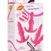 A simple but comprehensive set for the anal curious, this 4 piece kit includes a classically-shaped plug, a smoothly-bulbed design, a ribbed style reminiscent of anal beads, and a one-speed bullet vibe that slips easily into all three of them. Each plug is sleek, with just the right amount of give, and tapered for your comfort. Just slide the petite peanut vibrator into the base of the plug you wish to play with, whether you feel like a classic shape, an exciting bulge, or three pops of pleasure. The easy-to-use button operation makes playtime hassle-free and the contoured bases keep each plug safely and comfortably in place between your cheeks. This firm, yet flexible material is phthalate-free and compatible with water-based and silicone lubricants. The bullet is even waterproof for easy cleaning or use in the shower.