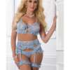 Garter Corset Teddy & Stockings Mauve Merlot O/S