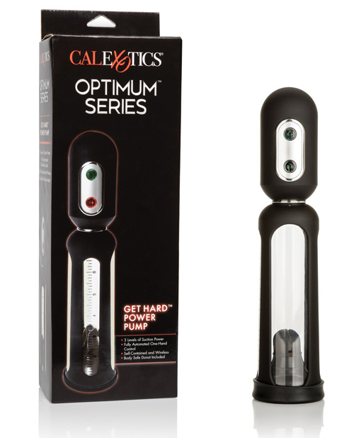 The Get Hard Power Pump is a high-tech, fully automatic pump with easy-to-use pressure control. Totally self-contained wireless design with 3 ascending levels of suction power. Features an auto start button with quick air release valve and flanged base for secure seal. Universal measurements on cylinder to track results. Made from PS (cylinger) ABD (buttons) ABS with PU Cote (handle, case) Silicone (sleeve) ABS with Silver Plating/Metallic Plating (decor). Requires 3 AAA Batteries. 7.5″ X 2.25″. From Cal Exotics.