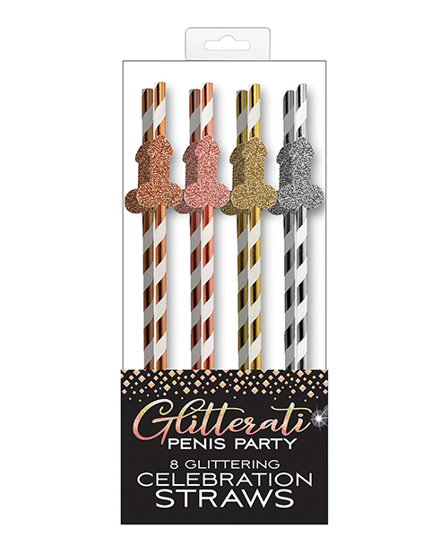 Glitterati Cocktail Straws from Little Genie. Penis party supplies. 8 count. Assorted colors.