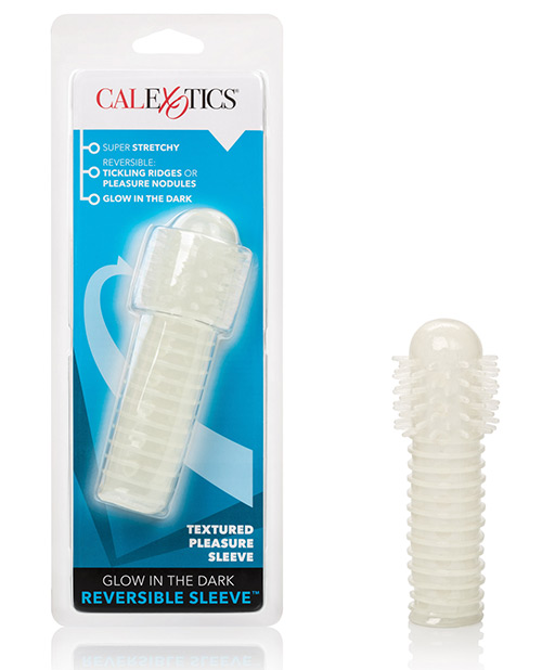 Most penis sleeves are reserved for the pleasure of your partner, but this penis enhancer is reversible so you can both experience the tantalizing pleasure of textured silicone rubbing your most sensitive areas. The lightly scented silicone stretches to fit comfortably over most penises or vibrators, and each side features unique tickling ridges and nodules for mutual pleasure. And, it glows in the dark, so you’ll always know where to direct your glowing pleasure stick!