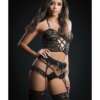 Hiphugger Garter w/Diamond Rings & Stockings Blackout Collection from Gworld. One Size, Bust: 30in.-36in. A-C cup. Weight: 110lb-165lb. Waist 24in.-29in. Hip: 34in.-39in. Size: 0-10.