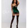 Holiday Stretch Velvet Lace Garter Slip Evergreen/Black QN