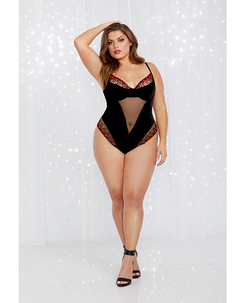 Holiday Stretch Velvet Underwire Teddy Black QN