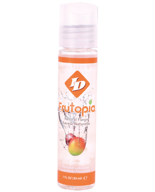 Uncover your perfect sexual pleasure with the ID Frutopia Natural Lubricant. Frutopia is made with 100% natural fruit flavor for 100% pure fun! ID Frutopia contains 100% natural fruit flavor. Sweetened naturally, it’s sugar free, water based, vegan, and latex friendly. Mango Passion. 1 oz Bottle.