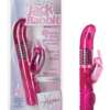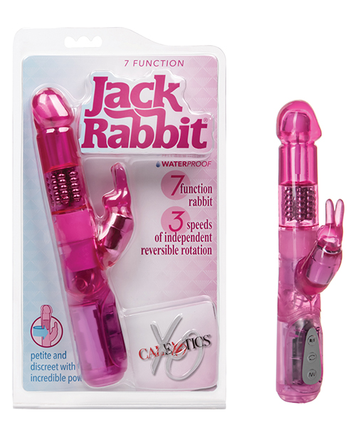 7-Function Jack Rabbit from California Exotics. 7 intense functions of vibration, pulsation and escalation. 3 speeds of independent reversible rotation. Choice between 5 solid rows or 3 floating rows of synchronously rotating beads. Easy push-button controls with LED. Level: Intermediate. TPE (rabbit) ABS (controller) Carbon Steel (beads). 4.75″ x 1.25″/12cm x 3.25cm (shaft). 2″ x 1.25″/5cm x 3.25cm (rabbit). Requires 3 AAA Batteries