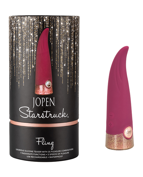 Give yourself over to a sensual love affair with the flexible Jopen® Starstruck Fling. This sensually designed massager thrills with a flickering tip, flexible body and 35 functions of vibration.