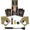 A collectible erotic playset featuring a satin blindfold tie with leather tassel. Includes 3 sensual body products and a set of 12 Kama Sutra Play Cards: 10 Kama Sutra position cards and 2 “Wild Cards” with tips and tricks about how to incorporate the included products into the game. Includes: Blindfold sensual satin blindfold tie with leather tassel. 12 Kama Sutra Play Cards for hours of erotic entertainment with your lover. Aromatics Massage Oil Harmony Blend (59 ml): massage oil made with essential oils. Oil of Love Raspberry Kiss (22 ml): kissable body oil. Love Liquid Classic (3 packets of 3ml): personal, water-based lubricant. From Kama Sutra.