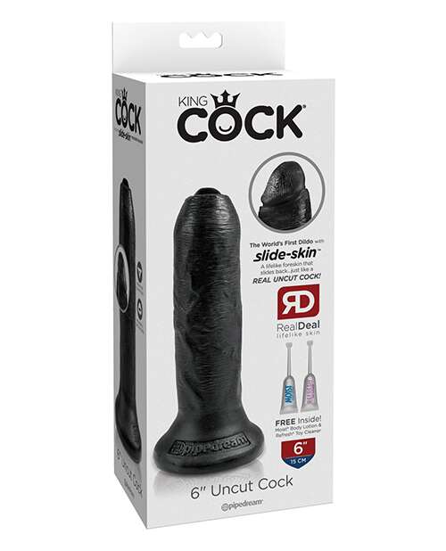 Not all uncut cocks are created equal! This King Cock fulfills your fantasies with a lifelike movable foreskin that slides back-just like a real uncut cock! The flexible shaft and foreskin are exquisitely handcrafted to provide incredibly stimulating sensations. The powerful suction cup base sticks to nearly any flat surface and makes every dildo harness compatible. Materials: PVC Item Length: 6.5 in. – ( 165 mm ) Item Width: 1.5 in. – ( 38 mm ) Item Height: 1.5 in. – ( 38 mm ) Insertable Length: 6 in. – ( 152 mm )