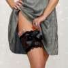 Black opaque thigh-high tights With a no-slip grip. Size A. Height: 4’11” – 5’5”. Weight: 90-140 lbs. Thigh Circumference: Up to 20in..