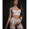 Lacey Bustier Top, Garter Boyshort w/Stockings Blackout O/S