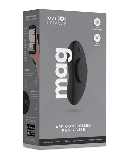 The Love Distance Mag Panty Vibrator is an app controlled panty vibrator. This long distance vibrator offers 20 powerful vibrating functions with 12 speeds. The vibe is made from body safe silicone and can be used independently of the app. It has a magnet that secures the vibe for hands free stimulation. Panty not included.