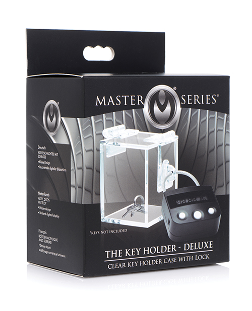 MS The Key Holder Deluxe Clear Key Holder Case with Lock This transparent case puts your power dynamic on display! Created for those who dabble in extended BDSM scenes involving chastity and key holding – the see through design and countdown timer lock sets the stage for a long-term exchange in power and trust for kinky couples and BDSM enthusiasts. Lock up your sub in a chastity device or a pair of restraints and lock up the keys until they earn their freedom.