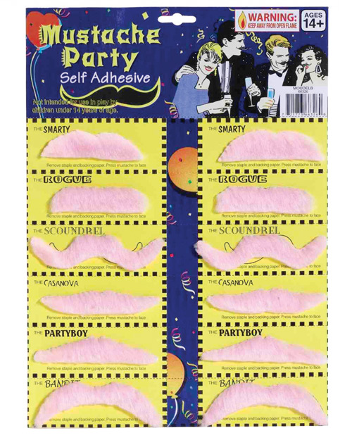 Mustache Party Self Adhesive – Pink Card of 12 from Forum Novelties.