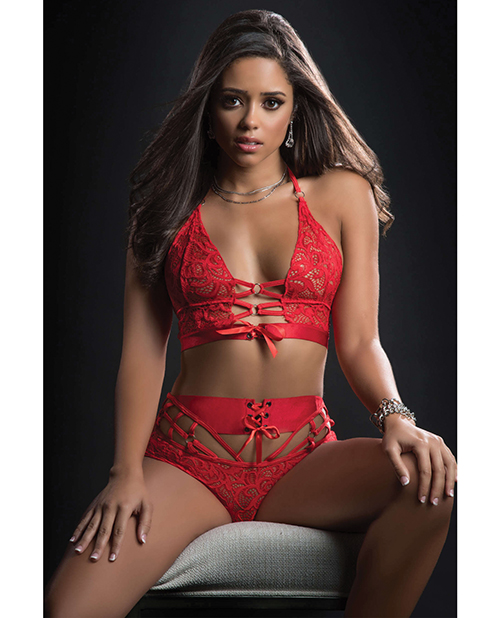 O Ring Halter Top & Boyshort Candy Red O/S