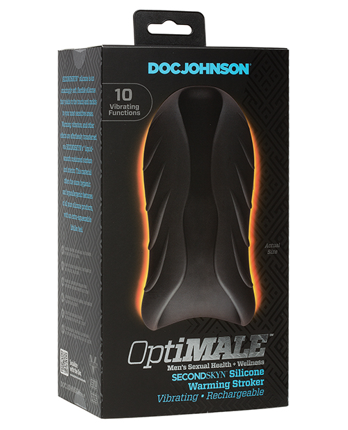 OptiMALE SECONDSKYN Silicone Warming Stroker - Black/Slate