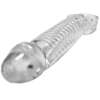 Please even the hungriest of cock-hounds by adding some serious length to your fuck stick. The base holds this thick rubbery dong on your junk. If you want a tighter fit no need to worry. Each Muscles comes with a small silicone stoppers that locks perfectly into the grooved indents at whatever length suits your dick. Each sheath has soft TPR ridges that not only feel great but also ass some cum churning massage sensations all up and down your fuck stick. Lube safe, water-based. Overall length: 9.25″, Inner core length: 6″, Insertable length: 8″, Circumference 6″, Weight: 7.7oz.