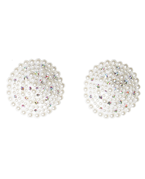 Pearl Round Pasties. Encrusted with pearl and rhinestone. Reusable self adhesive back. Rhinestone/Pearl.
