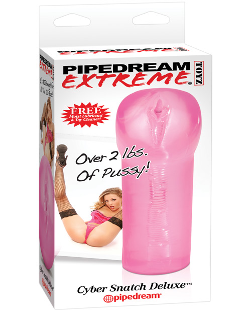 Get ready for the biggest and most intense Cyber Snatch ever developed! Pipedream’s Extreme Cyber Snatch Deluxe is over two lbs. of jelly-soft pussy and long enough to accommodate even the biggest guys. The soft, lifelike material is super-stretchy and clings to your pleasure rod like a real pussy would. The wavy pleasure shaft massages you with each stroke, while the supple material wraps around every inch. Once you penetrate the pretty pussy lips, this massive masturbator can take any punishment you dish out. Item Length: 9″ (22 cm); Item Width: 3″ (8 cm); Item Height: 3″ (8 cm); Item Weight: 2 lbs (907 g).