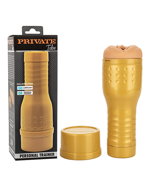 Ready to increase endurance and reach new orgasmic heights, the Private Personal Trainer Tube is a thrilling self-contained, suction masturbator. Fulfill your naughtiest fantasies with the real-feel texture, adjustable suction intensity and self-contained container. Keep the good times rolling when your slip this self contained sleeve into your suitcase or overnight bag for a naughty realistic feeling stroking experience wherever your travels take you.