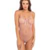 One size. Bust: 32in.-38in. Waist: 24in.-30in. Hip: 34in.-40in. Cup: B/C. Dress: 4-12.