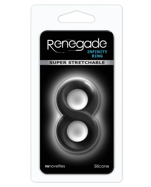 Pleasure and performance with Renegade Infinity ring. Super stretchy silicone for your comfort and enjoyment. Suitable for all lubricants. From NS Novelties. Color: Black Material: SIlicone