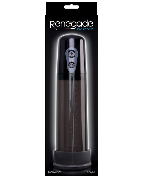 When it’s time to rise to the occasion, Renegade’s Man-Up penis pump is all you’ll need for added girth and increased endurance.Featuring a 9-inch, industrial grade acrylic cylinder with a supple TPE donut base for comfort, the Man-Up Pump is powered by a robust and silent motor, providing maximum suction with effortless ease. Compatible with all lubricants and easy to clean, the Man-Up Pump keeps you standing strong (Requires 2 x AAA batteries – Not Included). From NS Novelties.