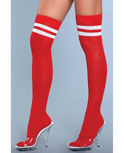 Ribbed Athletic Thigh Highs Red O/S