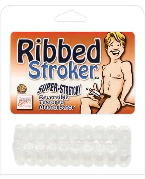 Get the most out of your alone time with the Ribbed Stroker masturbator sleeve. The incredibly flexible, soft, and flexible jelly material feels like the real thing, and this Stroker is reversible, you can turn it inside out and use the other side whenever you want a change of texture. Fits right in your hand and stretches to please any size; open ended for easy clean-up. Enjoy.