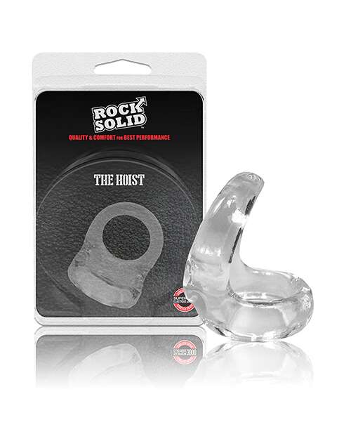 THE HOIST: Lifts and separates the cock and balls for super support in a phthalate-free Super Elastique 3000 elastomer. Super Elastique 3000 stretch-to-fit is very durable, provides a great fit, and helps maintain extra hard erections. Rock Solid cock rings combine quality and comfort for your best performance. This erection ring comes in colors clear and smoke.