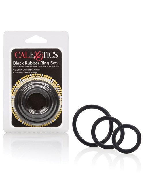 You never know when you might find yourself in need of a selection of cock rings. These black rubber Os are the perfect penis enhancement tool. Simply select one or more of the rings in this 3-piece set and arrange them on your cock for superior support. Use one alone or experiment with all three at once to provide extra enhancement for you and three times the sensation for your partner.