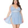 Scallop Stretch Lace & Mesh Babydoll & Thong Light Blue/White XL