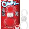 The Screaming O Ofinity Plus is a vibrating double erection ring featuring a unique isolating design that helps constrict blood flow to prevent premature ejaculation and promote stronger, harder erections. The top ring is worn around the penis while the bottom ring stretches around the testicles, and the middle motor positions perfectly to buzz against the sensitive zone in between. The results are more intense orgasms and longer-lasting sex! Features: Stretchy vibrating double ring that lasts and lasts, Unique isolation design for the ultimate erection, Elasto-stretch rings accommodate almost any size member! Additional Information: Reusable, Replaceable AG10 batteries last 60+ minutes, SEBS, Latex- and phthalate-free, Wireless, Waterproof.