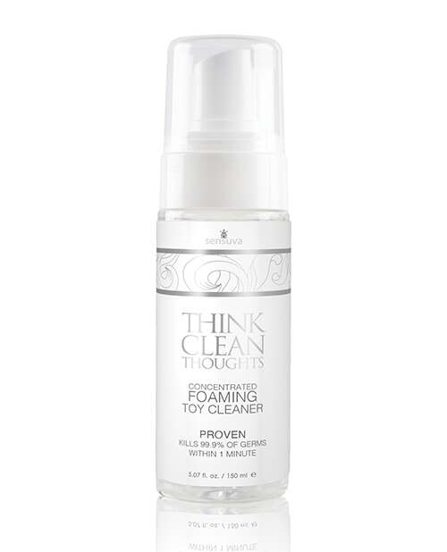 Think Clean Thoughts is a better choice for cleaning pleasure products than standard bar hand and body soaps because it is oil-free and will not break down toy materials, nor does it leave any residue that may be irritating to delicate tissue.
