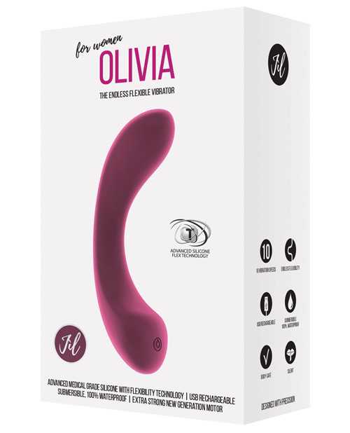 Jil brings sensual appearance unlike any other. Olivia is a very nimble vibrator that has been designed with precision, making it perfect to fulfill your deepest desires. We have used a new technology to develop this medical grade silicone toy, which gives Olivia softness and endless flexibility to adjust perfectly to the shape of your body. The super quiet, yet very powerful 10-speed motor provides satisfying stimulation that will work even in the deepest waters. When you and your partner are done simply connect it to the included USB Charger. One touch will be enough to fall in love with the warmth this toy radiates. Specifications: – Rotations per minute: 8,300 RPM – 10 Speed modes – Noise level: 50dB – Total Length: 15.6 cm / 6.14 Inch – Insertable Length: 12 cm / 4.72 Inch – Width (at widest point): 3.6 cm / 1.41 Inch – Insertion Width: 2.2 cm / 0.86 Inch – Total Depth (at deepest point): 6.7 cm / 2.63 Inch – Insertion Depth: 2.6 cm / 1.02 Inch – Material: Medical Grade Silicone – Rechargeable – Battery charging time: 210 minutes – Battery life: 60 minutes – Waterproof-Submersible – Weight: 7.27 oz